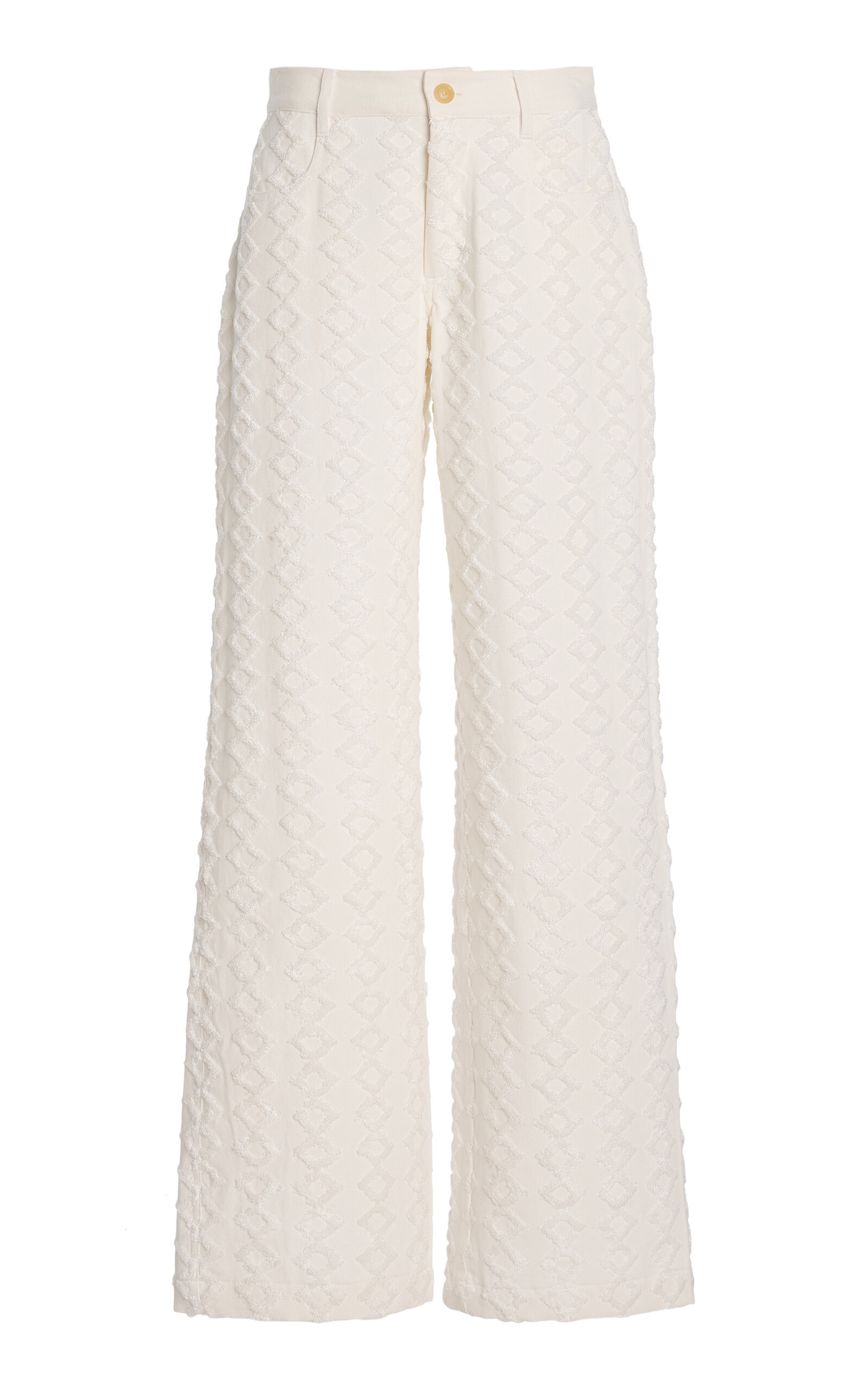 Boasting meticulous hand-detailing, ornate crochet, and organic fabrications, Rachel Scott’s line is both a rich collaboration and an homage to her home country, Jamaica. 'Stulla' is a long mid-waist jean with broderie anglaise detailing along side and back. PRODUCT DETAILS - Pre-Fall '25 - Zip fly fastening - Composition: 100% cotton; Embroidery: 100% rayon - Machine wash - Imported