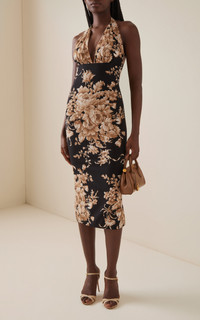 Floral Silk-Charmeuse Midi Halter Dress floral