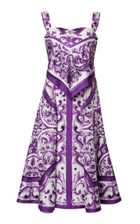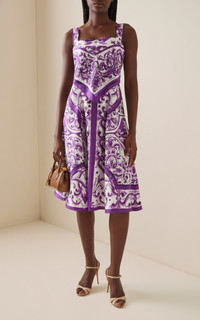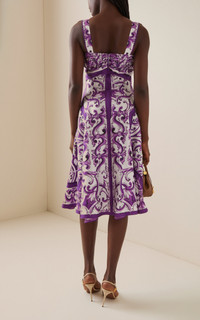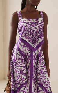 Majolica-print silk twill dress