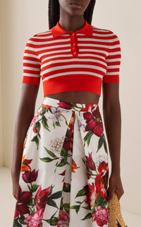Each season, Domenico Dolce and Stefano Gabbana deliver a healthy dose of sex appeal inspired by the archives. You'll find prints that nod to the glamour and culture of Italy and figure-accentuating dresses and separates that celebrate the female form. Made from a finely ribbed knit, this classic polo has a cropped fit that hugs the body. PRODUCT DETAILS - Pre-Fall '25 - Button fastening - Composition: 100% rayon - Dry clean - Made in Italy