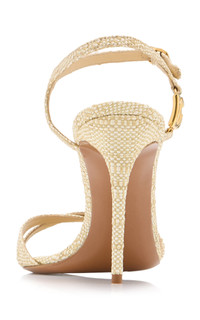 Every accessory Dolce & Gabbana presents is designed to enhance a woman's natural femininity. From their soft silk scarves to their coveted Sicily handbags, the duo continue to charm via fine artisanal craftsmanship and unabashed Italian glamour. Crafted from woven raffia, these strappy sandals are set atop sleek stiletto heels and marked with the DG logo in golden hardware. PRODUCT DETAILS - Buckle fastening - Composition: raffia - Made in Italy