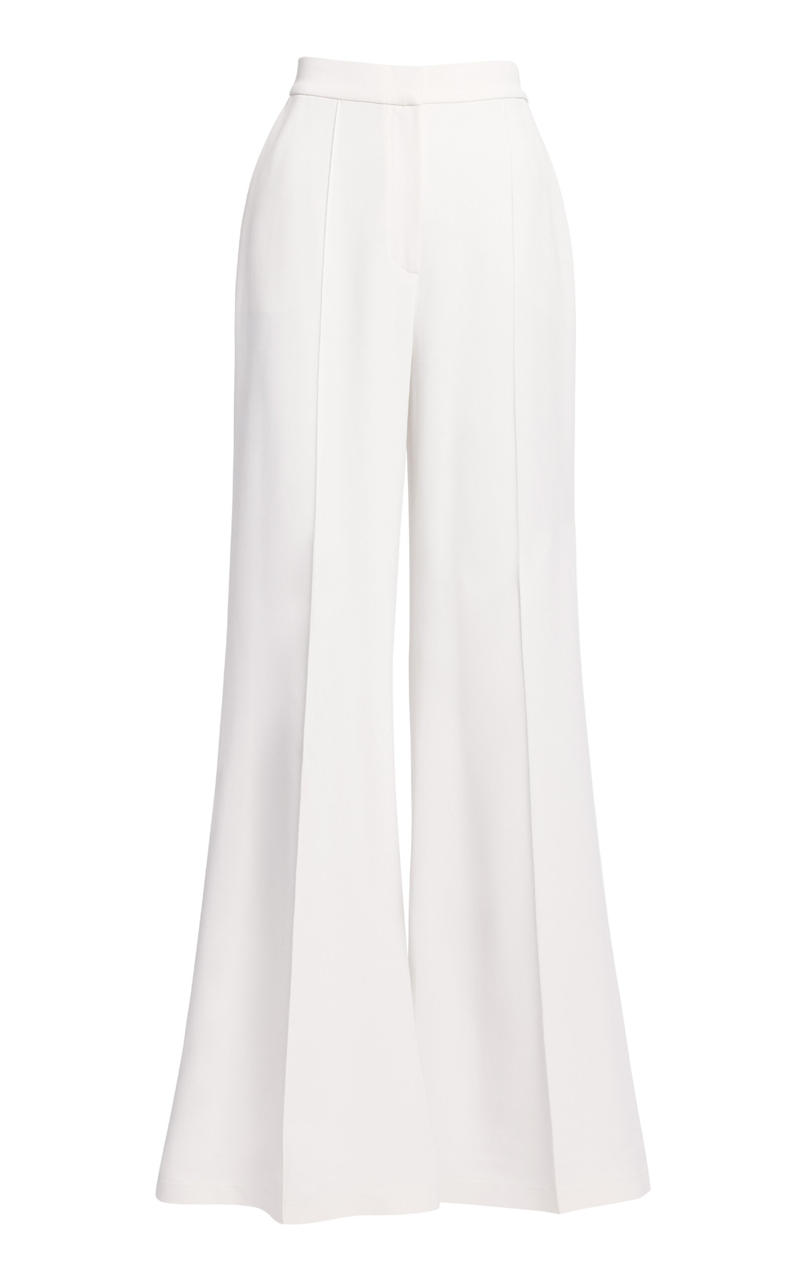 PRODUCT DETAILS - High-waisted, sleek flared leg, wide-cut - Concealed zip and hook fastening - Composition: Cady - Color: Powder White - Dry clean only - Pre-Fall '25