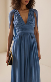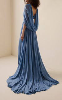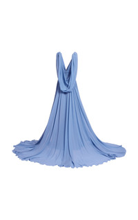 PRODUCT DETAILS - Sleeveless with shoulder capes, V-neck, train, maxi hem - Concealed zip fastening - Composition: Georgette - Color: Orient Blue - Dry clean only - Pre-Fall '25