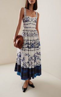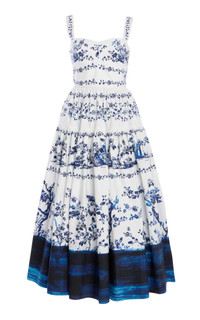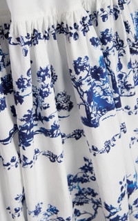 PRODUCT DETAILS - Printed, bustier bodice, cinched waist, flared midi hemline - Concealed zip fastening - Lined - Composition: 100% Cotton (Organic) Gots 100% Cotton - Color: Cyanotype Etching White - Dry Clean - Pre-Fall '25
