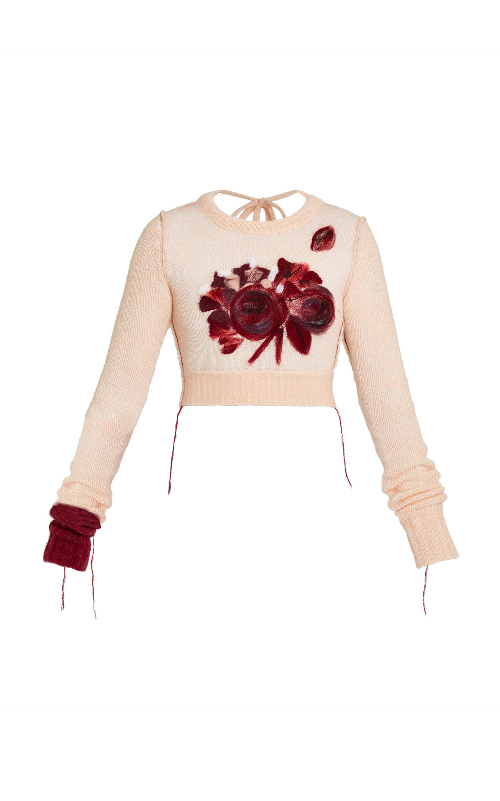 PRODUCT DETAILS - Slim fit, long sleeves, crew neck, cropped length - Comes without sleeve patch, sleeve length reduced - Slips on - Composition: 50% Superfine Alpaca, 50% Recycled Polyamide - Color: Camisole Pink - Dry Clean - Fall '25
