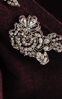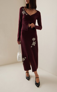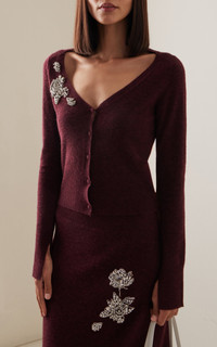 PRODUCT DETAILS - Cropped, embroidered, V-neck, relaxed fit - Button fastening through front - Raised neckline in production - Bra is featured as styling only - Unlined - Composition: Main: 59% Polyester 23% Viscose 10% Wool Merino 5% Cashmere 3% Elastane - Dry Clean - Pre-Fall '25