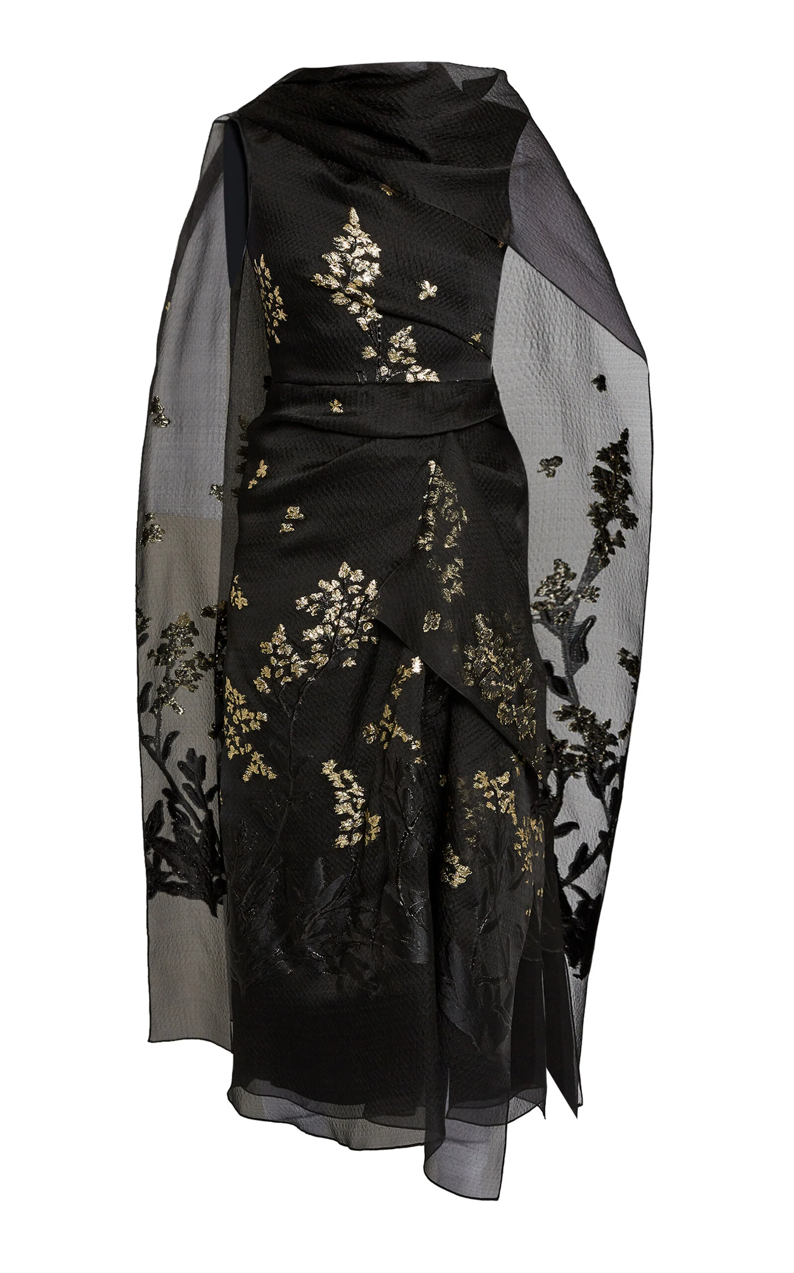 ORGANZA FIL COUPÉ DRAPED MIDI DRESS
