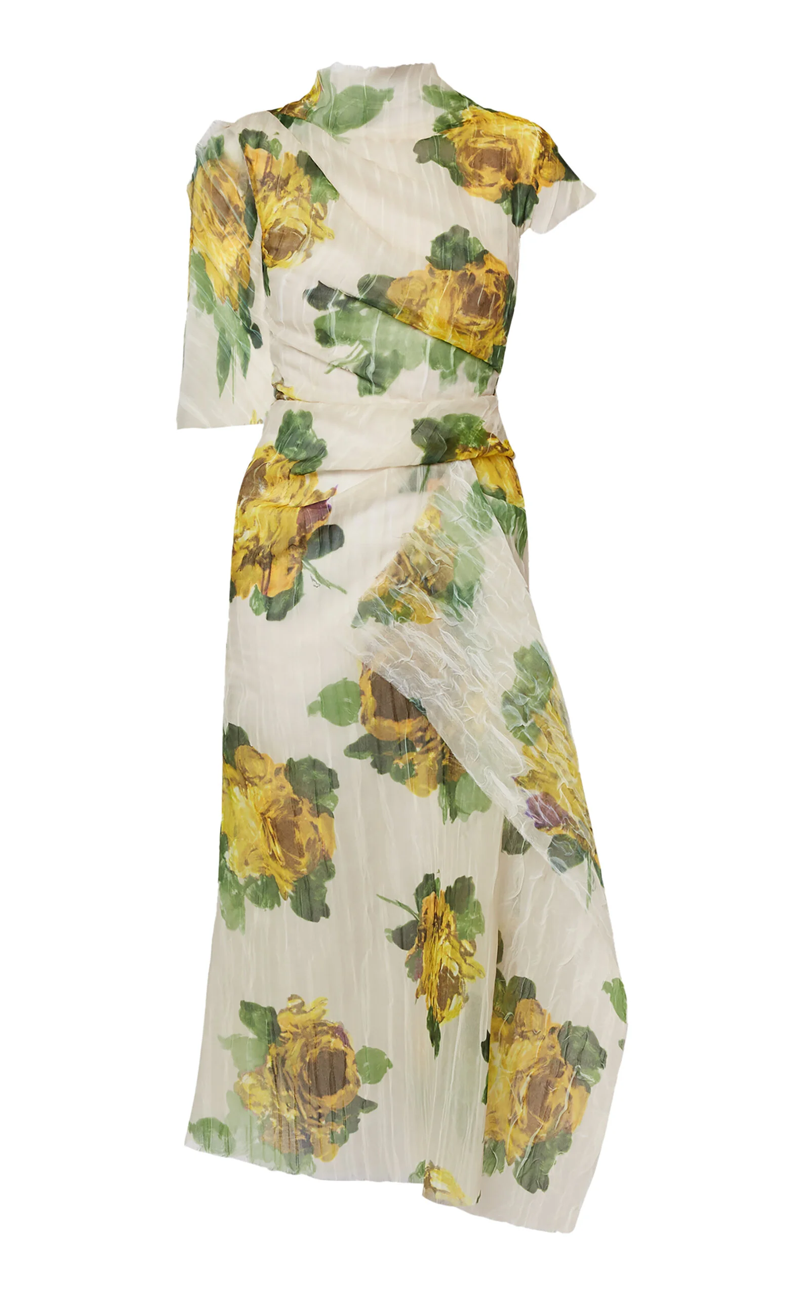 PRODUCT DETAILS - As seen on the Erdem Fall '24 runway - Slim fit, one short sleeve, one cape sleeve, mock neck - Lined - Composition: 53% Polyamide, 47% Polyester; Lining:100% Silk - Color: yellow - Zipper fastening - Made in United Kingdom