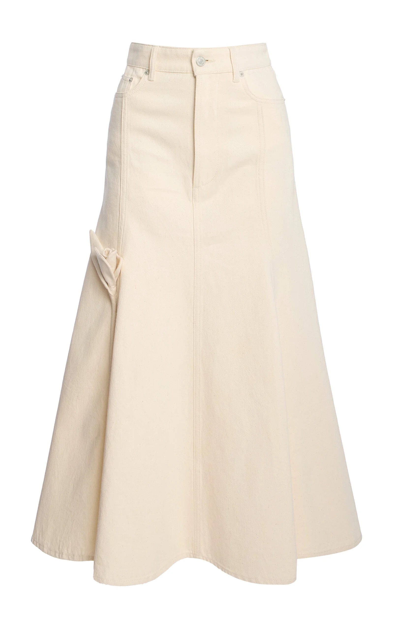 Fluted Denim Midi Skirt ivory