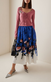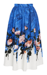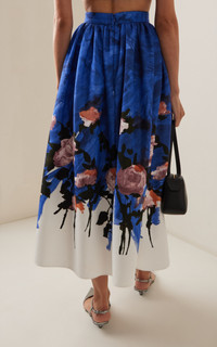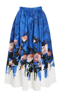 PRODUCT DETAILS - High-rise waist, high-rise waist, full shape, midi hem - Concealed zip fastening - Unlined - Composition: 66% Cotton 34% Viscose - Color: Brushstroke Rose Cobalt Blue - Dry Clean - Pre-Fall '25