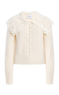 Lace-Collared Wool-Blend Cardigan ivory