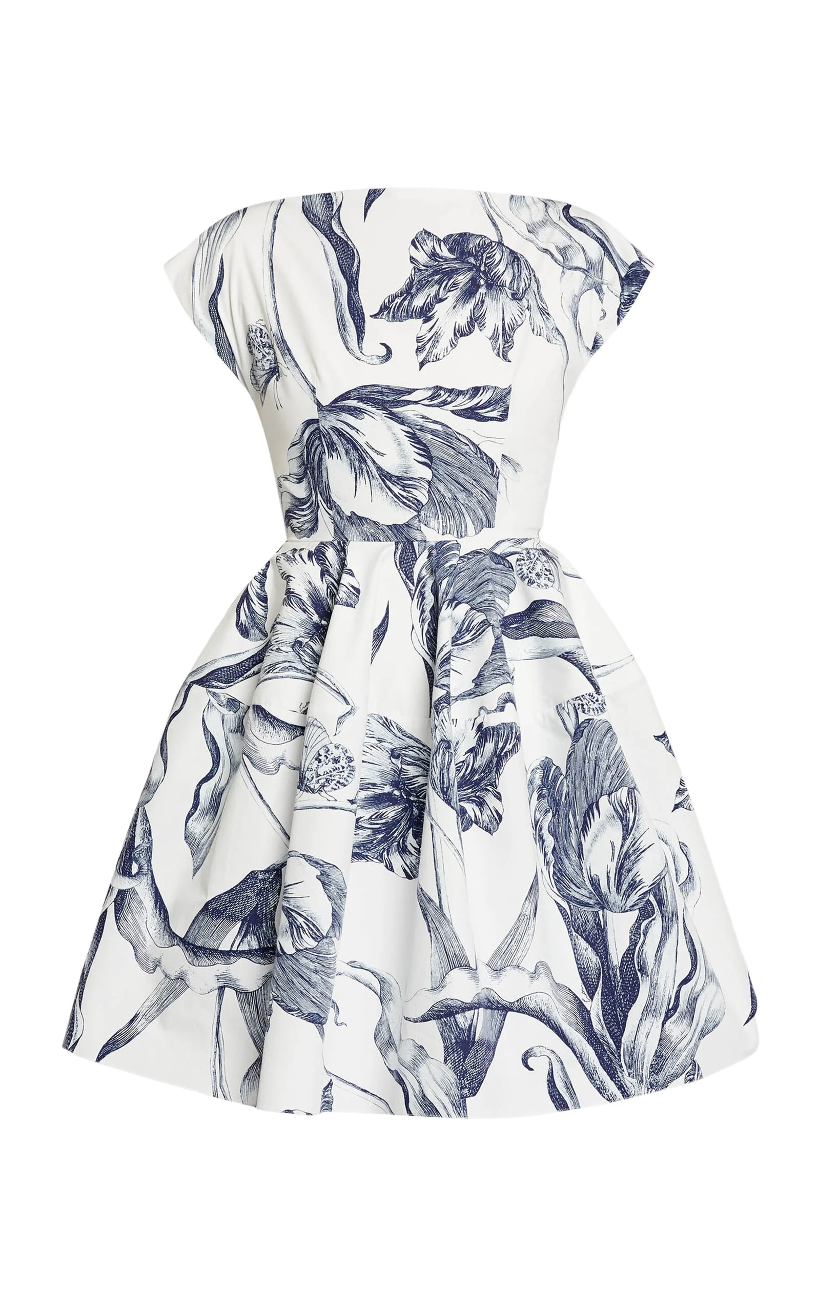 PRODUCT DETAILS - Slim fit, short sleeves, boatneck, pleats - Zipper fastening at back - Composition: 100% Organic Cotton; Lining: 100% Cotton - Color: Botanical Engraving Ivory - Dry Clean - Made In: Moldova - Resort '26