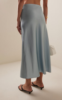 Founded by stylist Chloe Bartoli, Eterne specializes in elevated wardrobe essentials created with exquisite craftsmanship and their brand of muted luxury. A classic slip silhouette made from stretch-silk satin with an easy elastic waistband. PRODUCT DETAILS - Pre-Fall '25 - Pull on - Composition: 97% silk, 3% spandex satin - Designer color: Dusty Blue - Dry clean - Imported SIZE & FIT - Our model is wearing a size Small - Model is 5'10" with a 30" bust, 24" waist, and 34" hip - Designed for a slim fit
