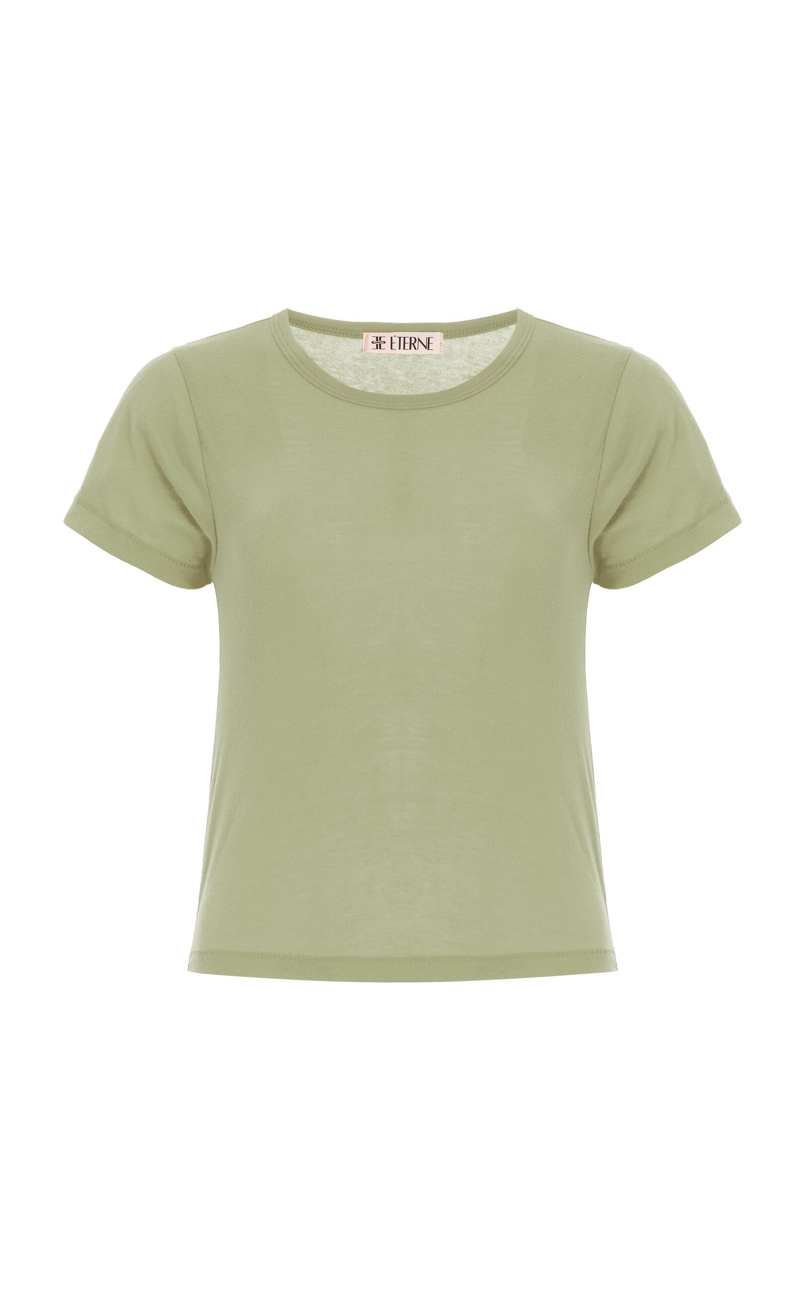 Founded by stylist Chloe Bartoli, Eterne specializes in elevated wardrobe essentials created with exquisite craftsmanship and their brand of muted luxury. Cut from a soft, lightweight cotton-modal jersey, the 'Baby Tee' has a shrunken slim fit with a thin-lined crewneck. It's a perfect everyday essential. PRODUCT DETAILS - Spring/Summer '25 - Slip on - Composition: 50% cotton, 50% modal - Designer color: Sage - Dry clean - Imported SIZE & FIT - Designed for a slim fit