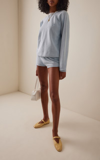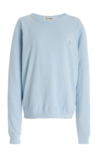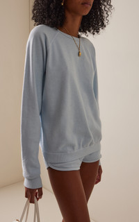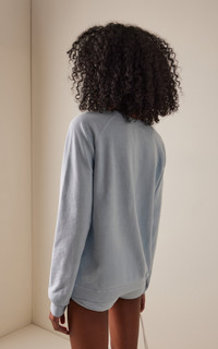 Founded by stylist Chloe Bartoli, Eterne specializes in elevated wardrobe essentials created with exquisite craftsmanship and their brand of muted luxury. This oversized raglan-sleeve sweatshirt is crafted from ultra soft French terry, offering a loose, comfortable fit and a unisex feel—a versatile essential for everyday wear. PRODUCT DETAILS - Pre-Fall '25 - Slip on - Composition: 100% cotton - Designer color: Dusty Blue - Machine wash - Imported SIZE & FIT - Our model is wearing a size Small - Model is 5'10" with a 30" bust, 24" waist, and 34" hip - Designed for an oversized fit