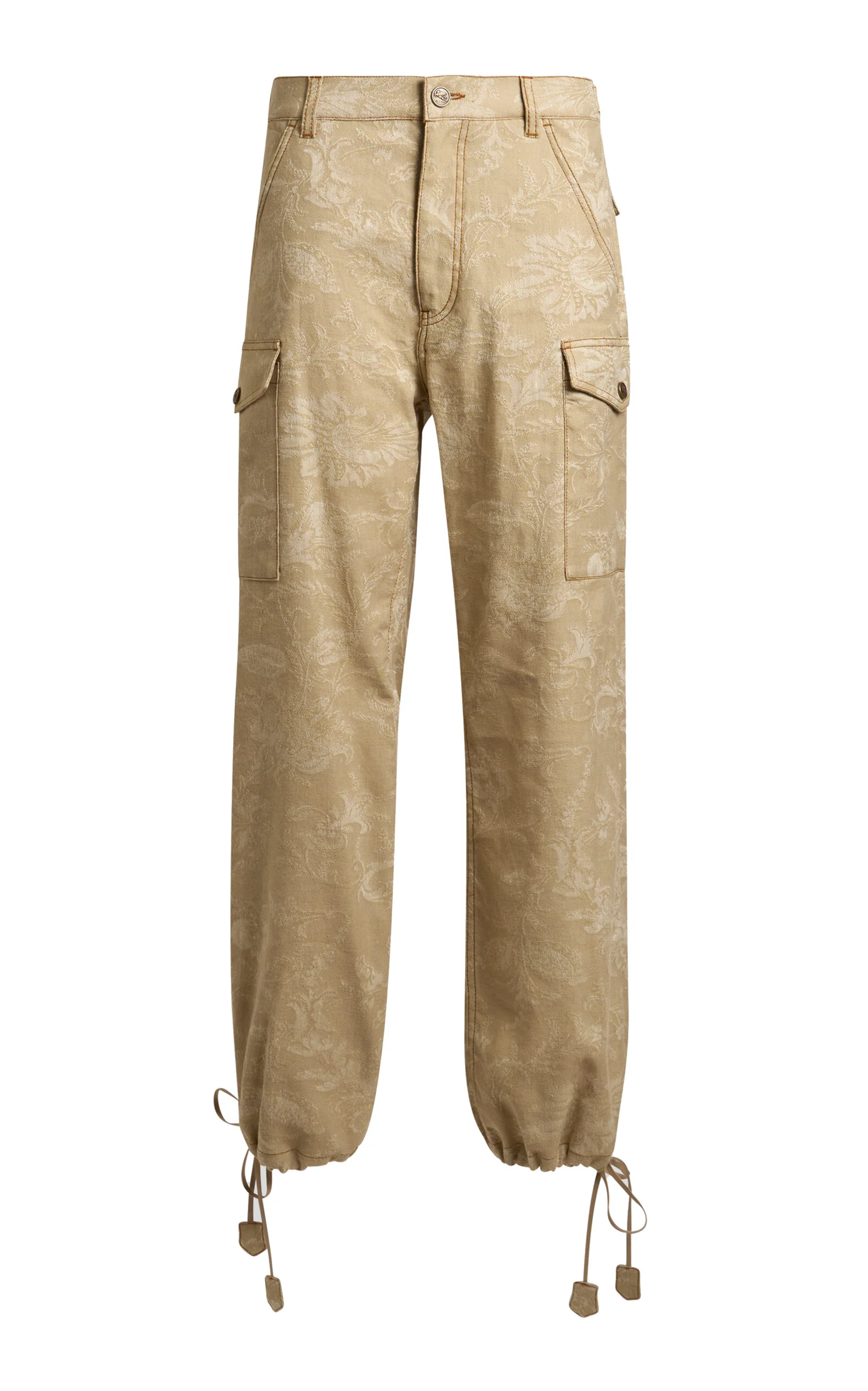 PRODUCT DETAILS - Drawstring waist, cargo style, cinched cuff, relaxed fit - Drawstring - Composition: 62% Cotton, 37% Linen, 1% Elastane - Color: Var. Multicolor F.Do Beige - Dry clean only - Made In: Italy - Resort '26