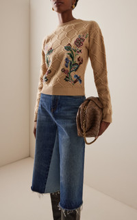 Embroidered Wool-Cashmere Sweater nude