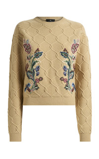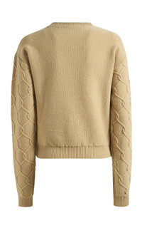 PRODUCT DETAILS - Textured knit design, embroidered, crew neck, ribbed trim - Slip on - Unlined - Composition: 90% Wool, 10% Cashmere - Color: Beige - Dry clean only - Pre-Fall '25