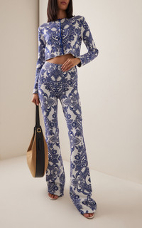 For Resort ’25, Marco de Vincenzo brings an irresistibly youthful exuberance to the Italian house’s bohemian roots. Find the iconic paisley print updated with fairytale motifs and swishy fringe in dreamy pastels. PRODUCT DETAILS - Resort '25 - Pull on - Composition: 83% viscose, 17% polyester - Designer color: Cobalt - Dry clean - Made in Italy SIZE & FIT - Designed for a slim fit