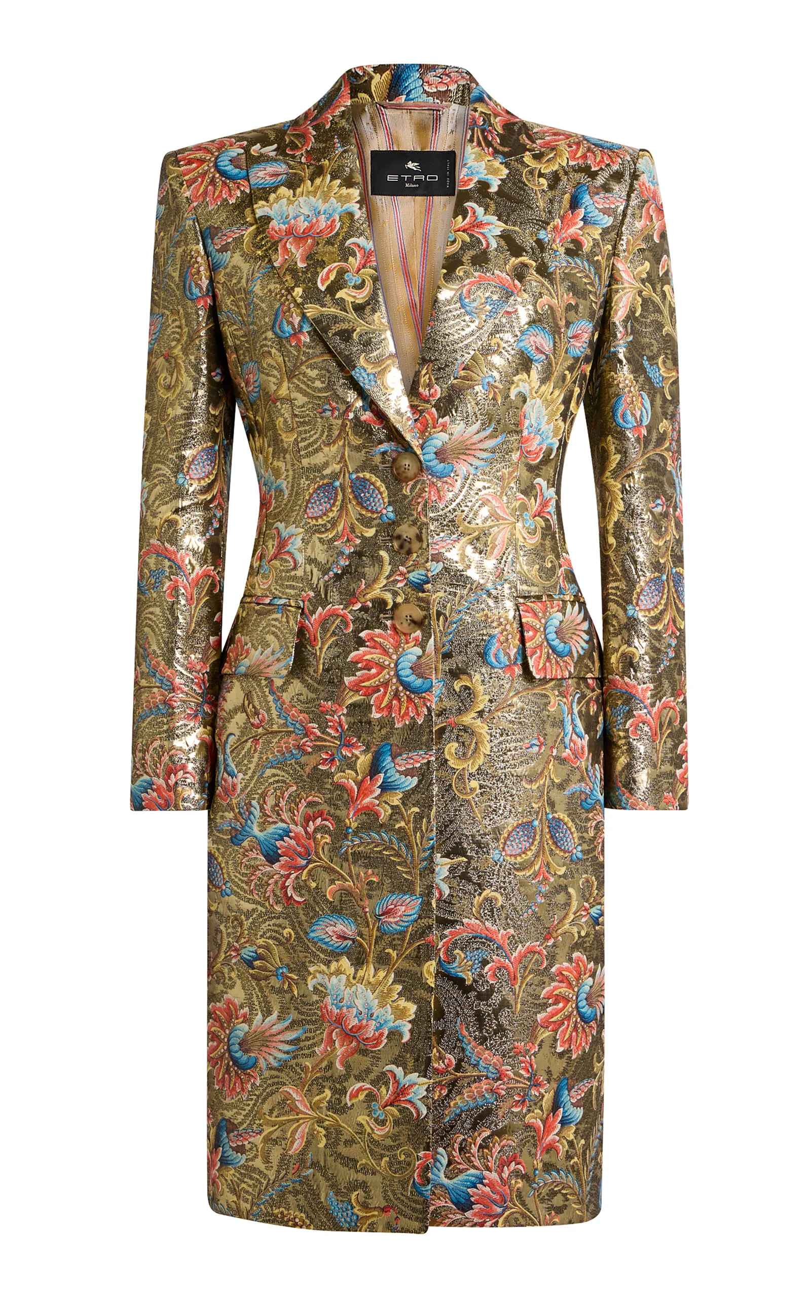 Creative director Marco De Vincenzo continues to redefine house codes by fusing the label's aesthetic (romantic, bohemian) with his own design principles (structured, graphic). Keeping a focus on archival prints, everyday staples get a younger feel while maintaining a certain visual boldness. This single-breasted dress coat is made from lustrous, lightweight brocade you can dress up with pumps or down with denim. PRODUCT DETAILS - Spring/Summer '26 - Button fastening through front - Composition: 58% Viscose, 28% Recycled Polyester, 14% Metallic Fiber - Designer color: Stampa Fedor Beige - Dry clean only - Made in Italy SIZE & FIT - Designed for a tailored fit