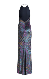 PRODUCT DETAILS - Slender fit, halter neck, open back, maxi hem - Slip on - Lined - Composition: 93% Polyester, 7% Elastane - Color: Stampa F.Do Blu - Dry clean only - Pre-Fall '25