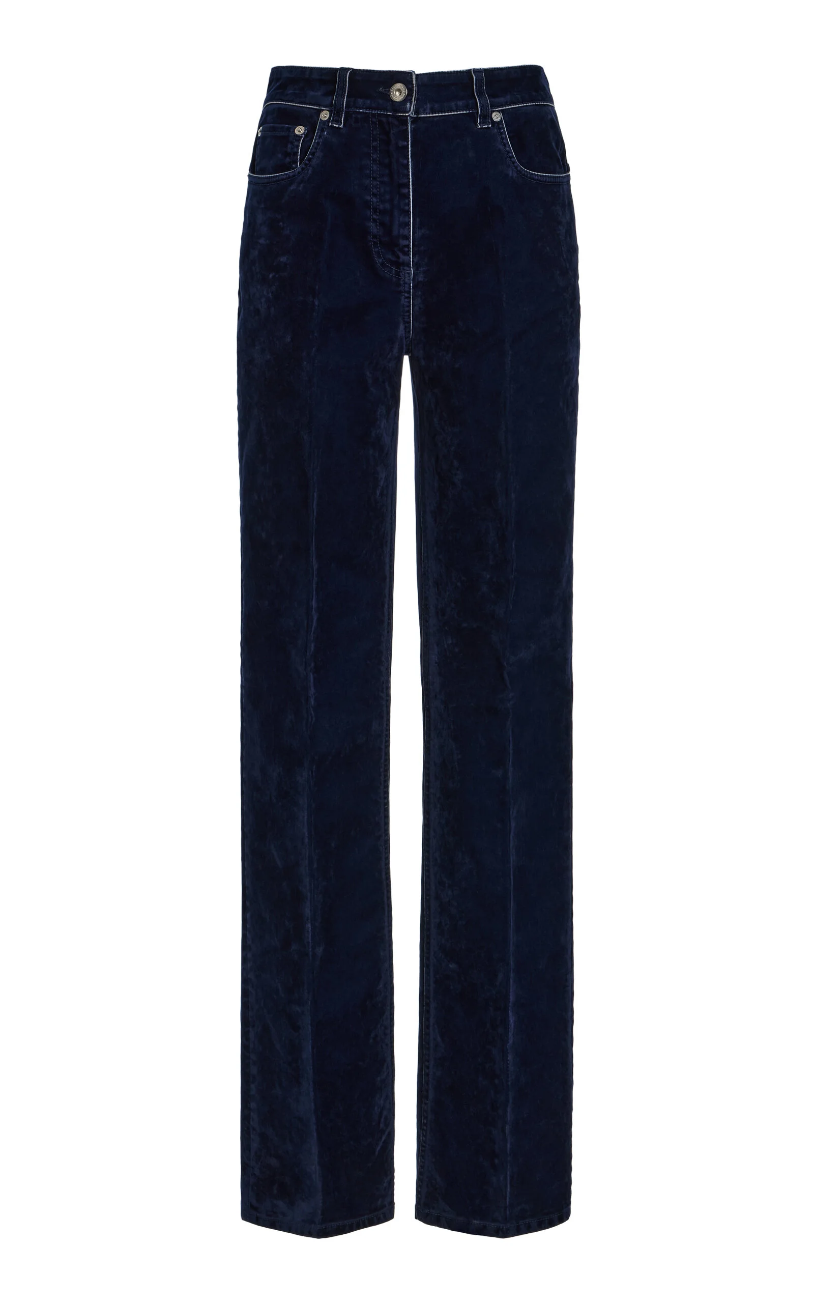 The epitome of everyday luxury, Ferragamo was founded in 1927 by legendary designer Salvatore Ferragamo, known as the "shoemaker to the stars." Under the design direction of Maximilian Davis, today the Florentine house pays homage to the founder's legacy by fusing enduring Italian craftsmanship and contemporary design — with environmental sustainability at its core. Soft, flocked cotton gives this garment dyed five pocket trouser an almost velvety feel. The straight fit is expertly cut according to the textbook denim details: custom doughnut buttons and rivets, with tonal stitching and a suede logo tab at the back. Pair with the matching jacket. PRODUCT DETAILS - Resort '26 - Zip fastening - Composition: 76% cotton, 22% viscose, 2% elastane - Dry clean - Made in Italy