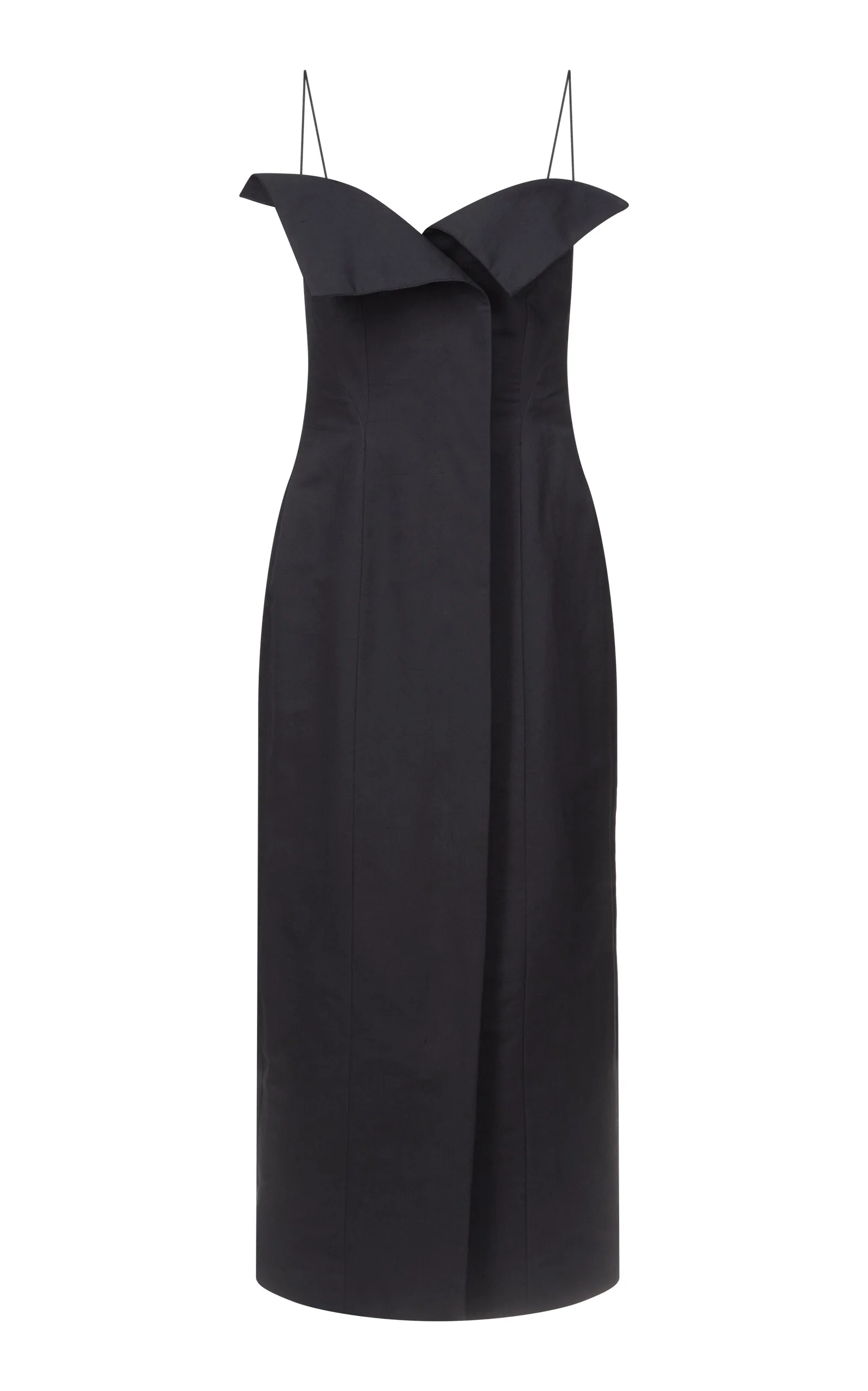 Skylar Tailored Cotton-Silk Dress with Front Zip black