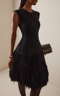 PRODUCT DETAILS - Slim fit, rounded neckline and sleeveless, fringed detailing throughout, A-line silhouette mini - Zip Closure Through Back - Lined - Composition: 98%Wool 2% Polyamide - Color: black - Dry Clean Only - Fall-Winter '25