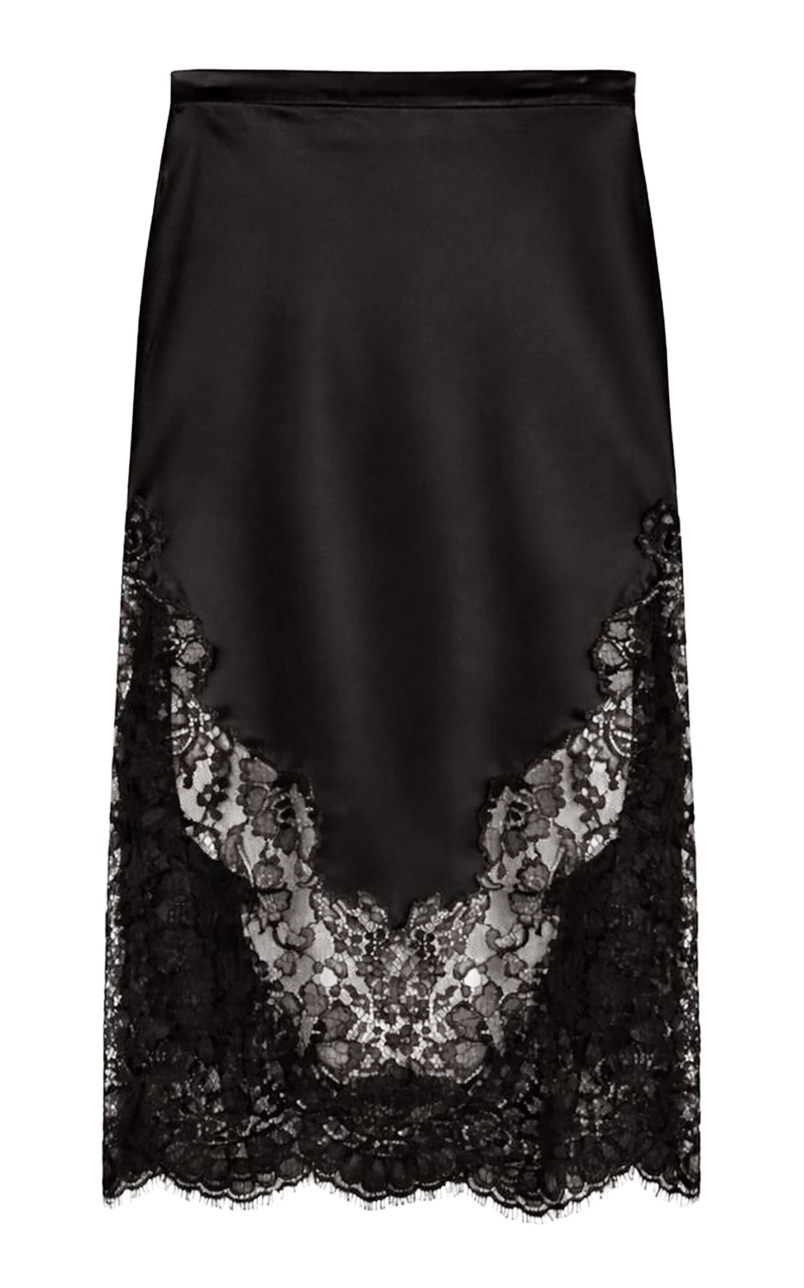 Founded in 2012 by Jennifer Zuccarini, Fleur du Mal takes a fashion approach to lingerie, and applies a lingerie language to fashion. C'est chic. The Juliet Lace Skirt, cut from ultra luxe silk charmeuse that hugs every curve. Falls just below the knee. Side invisible zipper closure. PRODUCT DETAILS - Spring '26 - Composition: Body: 92% Silk 8% Elastane Combo: 49.1% Polyamide 28.2% Cotton 22.7% Lyocell - Dry clean - Imported