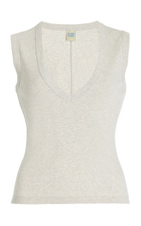 Flore Flore’s timeless cotton staples are crafted with clean, simple lines and flattering cuts—made to be worn every day. Made in a medium-weight organic cotton baby rib, the 'Deqi' is a deep v-neck tank top with a banded neck and scooped out armholes for a more modern look. Designed to be able to wear a bra underneath. PRODUCT DETAILS - Pre-Fall '24 - Slip on - Composition: 100% Organic Cotton - Designer color: Heather Gray - Machine wash - Imported SIZE & FIT - Our model is wearing a size Small - Model is 5’10" with a 31.5" bust, 23.5" waist, and 35" hip - Designed for a slim fit