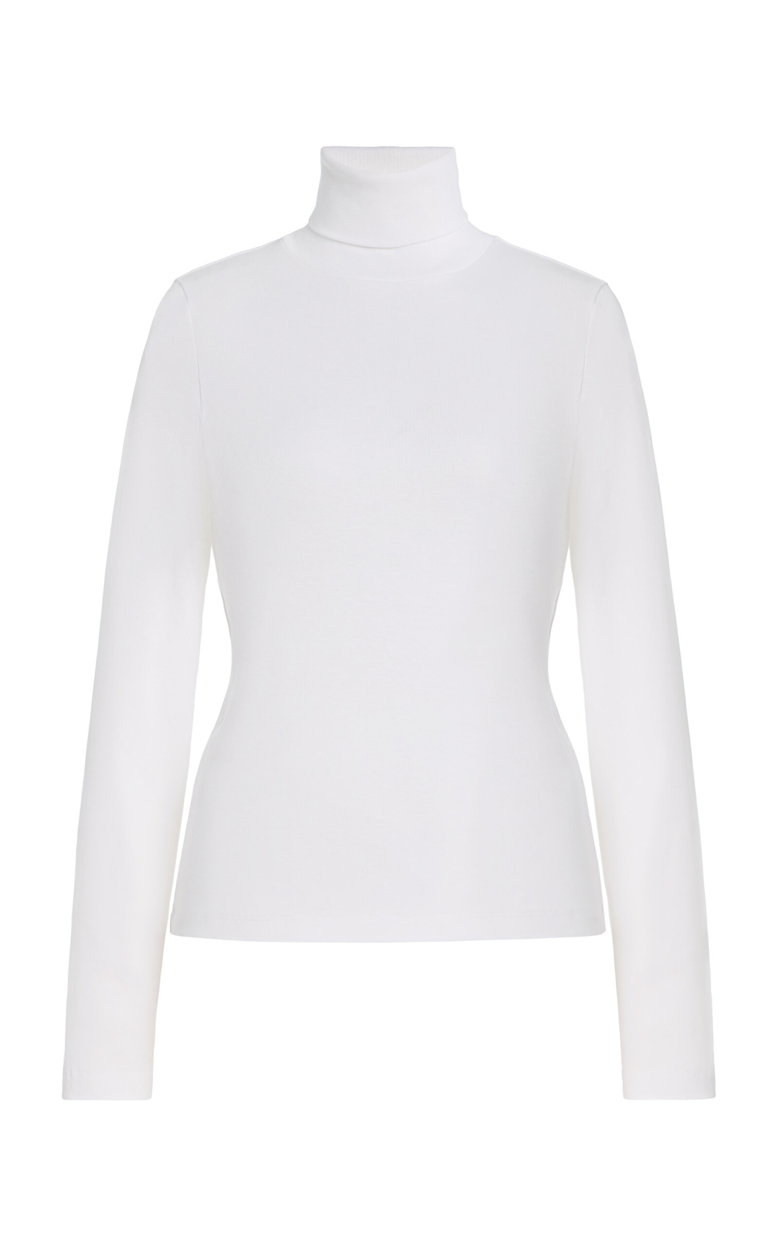 Flore Flore’s timeless cotton staples are crafted with clean, simple lines and flattering cuts—made to be worn every day. A long sleeve tee with a roll neck and double-stitched cut-off seam on the back, crafted from 100% organic cotton 1 x 1 rib. Use as a layering piece for cooler days. PRODUCT DETAILS - Fall '25 - Slip on - Composition: 100% organic cotton - Machine wash - Made in Portugal SIZE & FIT - Our model is wearing a size Small - Model is 5’10” with a 30” bust, 24” waist, and 34” hip