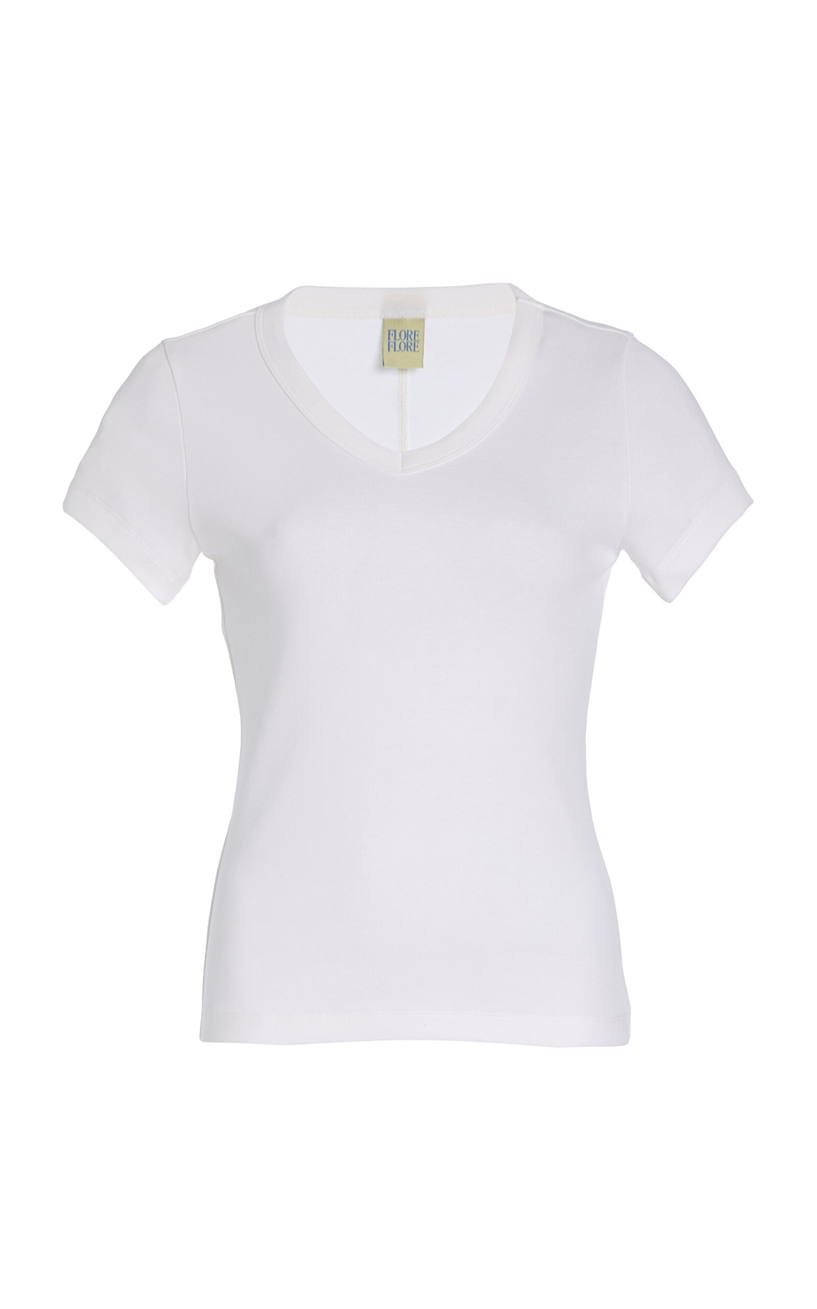 Flore Flore’s timeless cotton staples are crafted with clean, simple lines and flattering cuts—made to be worn every day. Made in a medium-weight organic cotton baby rib, the 'Jill' is a fitted V-neck baby tee with short sleeves and a double stitched cut-off seam on the back. PRODUCT DETAILS - Slip on - Composition: 100% organic cotton - Machine wash - Imported SIZE & FIT - Our model is wearing a size Small - Model is 5'10" with a 31" bust, 23.5" waist, and 33.5" hip - Designed for a slim fit
