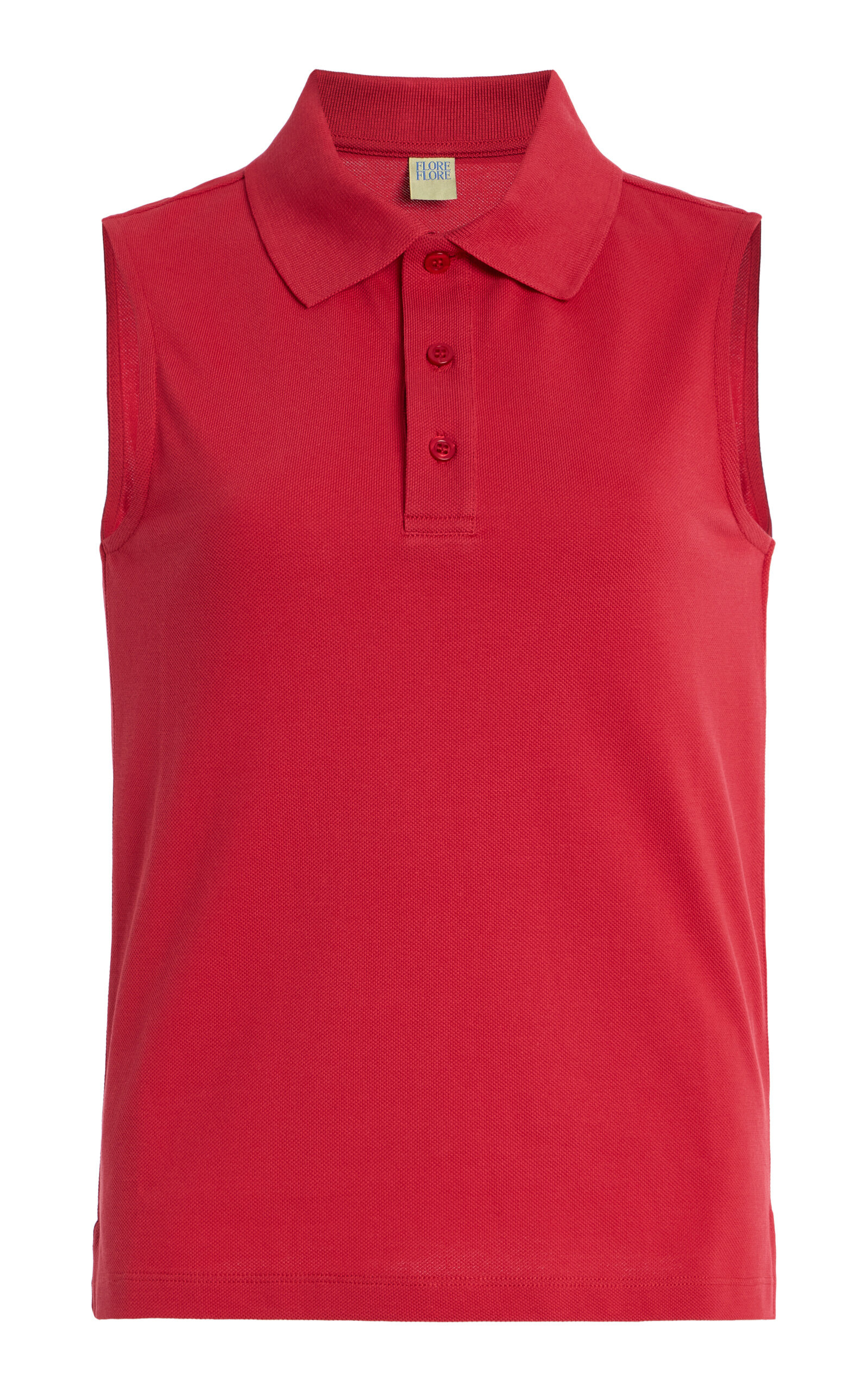 Flore Flore’s timeless cotton staples are crafted with clean, simple lines and flattering cuts—made to be worn every day. A sleeveless polo shirt with mother of pearl buttons and a rib collar. Made from 100% organic cotton 1 x 1 rib. PRODUCT DETAILS - Fall '25 - Slip on - Composition: 100% organic cotton - Designer color: Raspberry - Machine wash - Made in Portugal SIZE & FIT - Our model is wearing a size Small - Model is 5’10” with a 30” bust, 24” waist, and 34” hip
