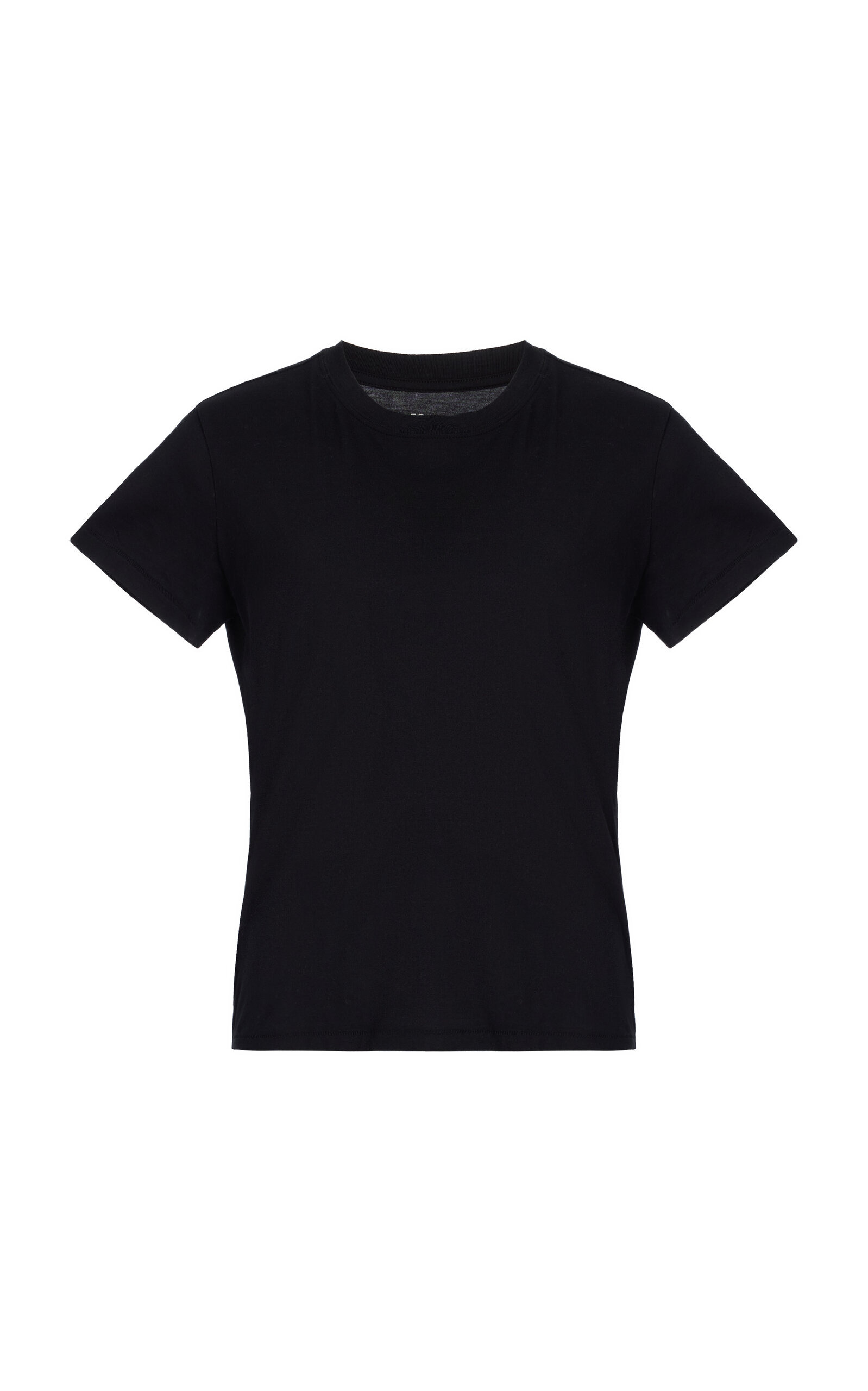 FRAME has distinguished itself in a bustling denim market by concentrating on quality materials and a superb fit that distinguishes even the simplest styles. Crafted in indulgently soft long-staple Supima cotton, this baby tee is your go-to everyday T-shirt. Cut to a slightly shrunken fit, you can pair it with denim for a chic, fuss-free uniform. PRODUCT DETAILS - Resort '25 - Slip on - Composition: 100% Supima cotton - Dry clean - Imported SIZE & FIT - Our model is wearing a size Small - Model is 5'10" with a 31" bust, 23.5" waist, and 33.5" hip - Designed for a shrunken fit