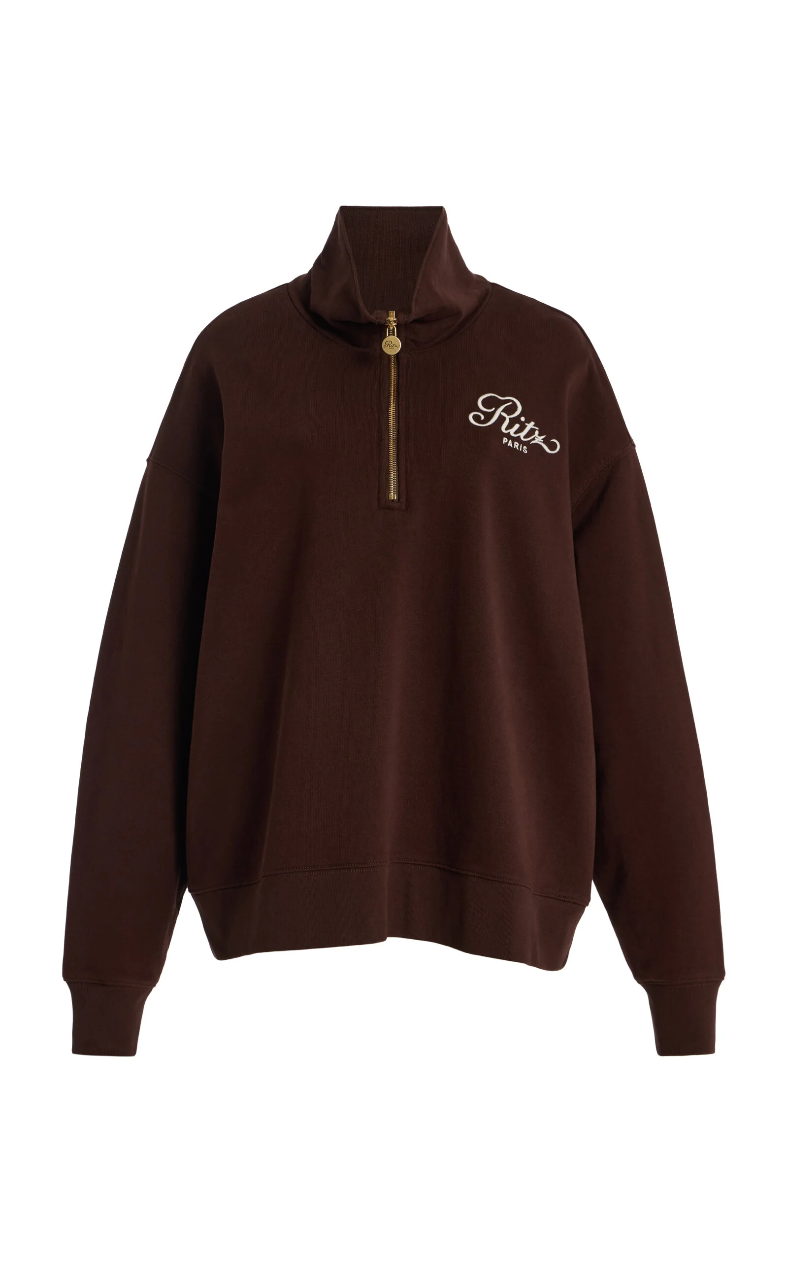 x Ritz Half-Zip Cotton Polo Sweatshirt brown