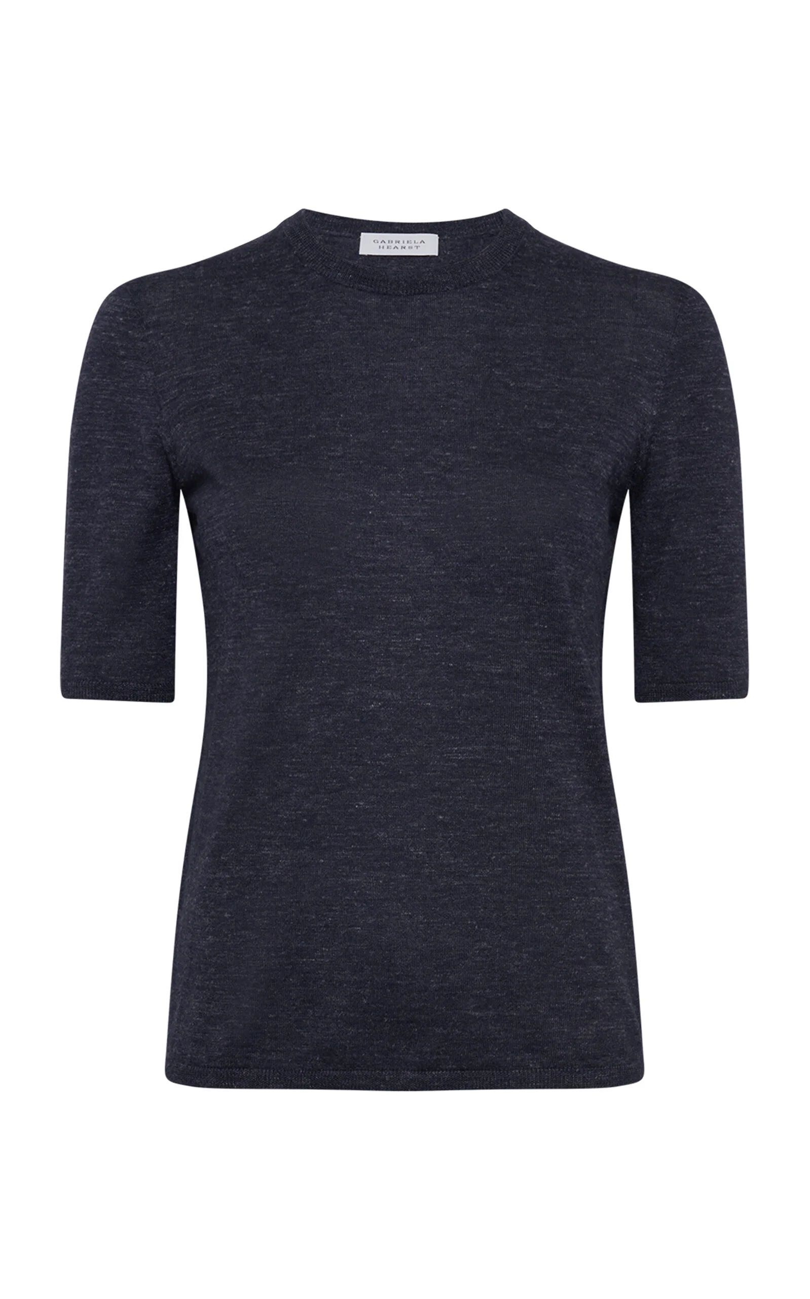 Chryse Knit T-Shirt in Navy Cashmere Silk with Hemp