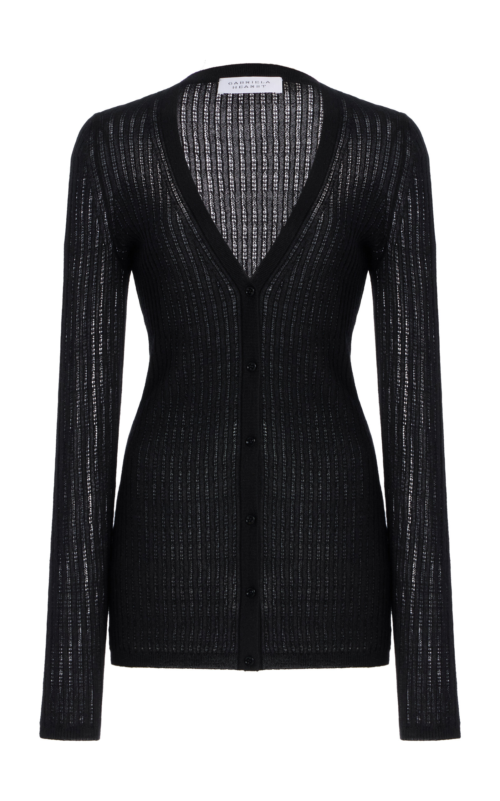 Emma Pointelle Cardigan in Black Silk Cashmere