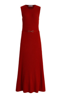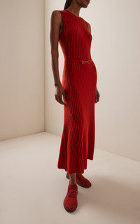 Meier Belted Knit Cashmere-Silk Midi Dress orange