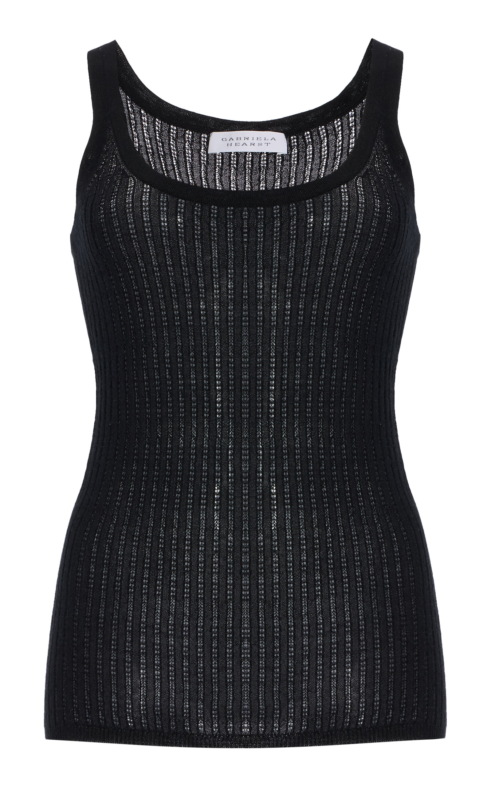 Nevin Pointelle Tank in Black Silk Cashmere