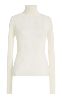 Peppe Ribbed Cashmere-Silk Turtleneck Top ivory