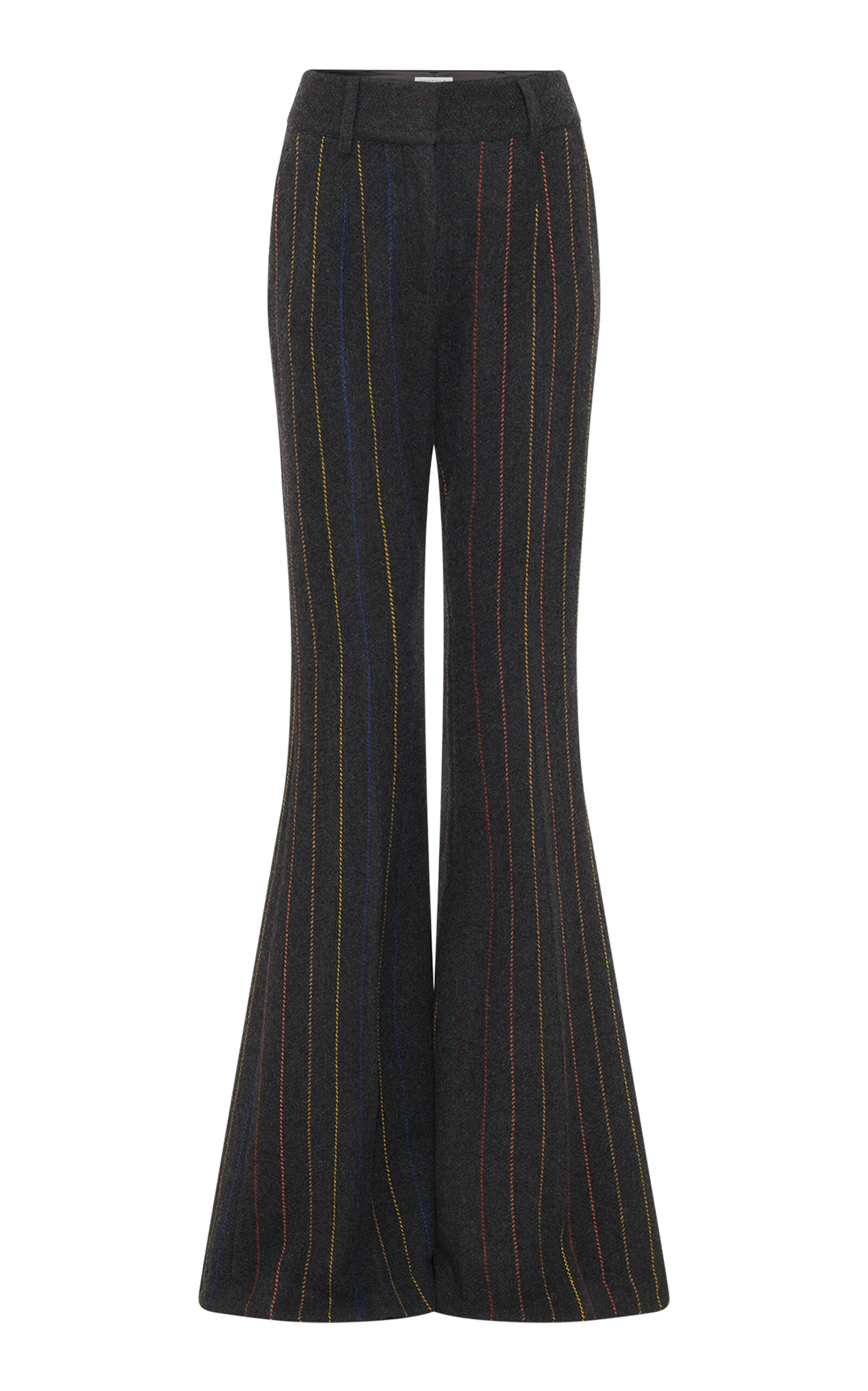 Rhein Striped Wool-Cashmere Flared Pants grey