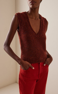 The sustainability pioneer is the industry leader in luxurious clothing and accessories that strike an understated elegance, yet are crafted with the utmost attention-to-detail and commitment to ethics. The Solomon Vest, knit from full cashmere yarn that has a speckled Donegal effect, designed with a timeless v-neck for effortless layering and elevated comfort. A seamless complement to the rest of the collection. PRODUCT DETAILS - Fall '25 - Slip on - Composition: 100% cashmere - Designer color: Burnt Sienna - Dry clean - Imported
