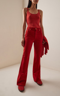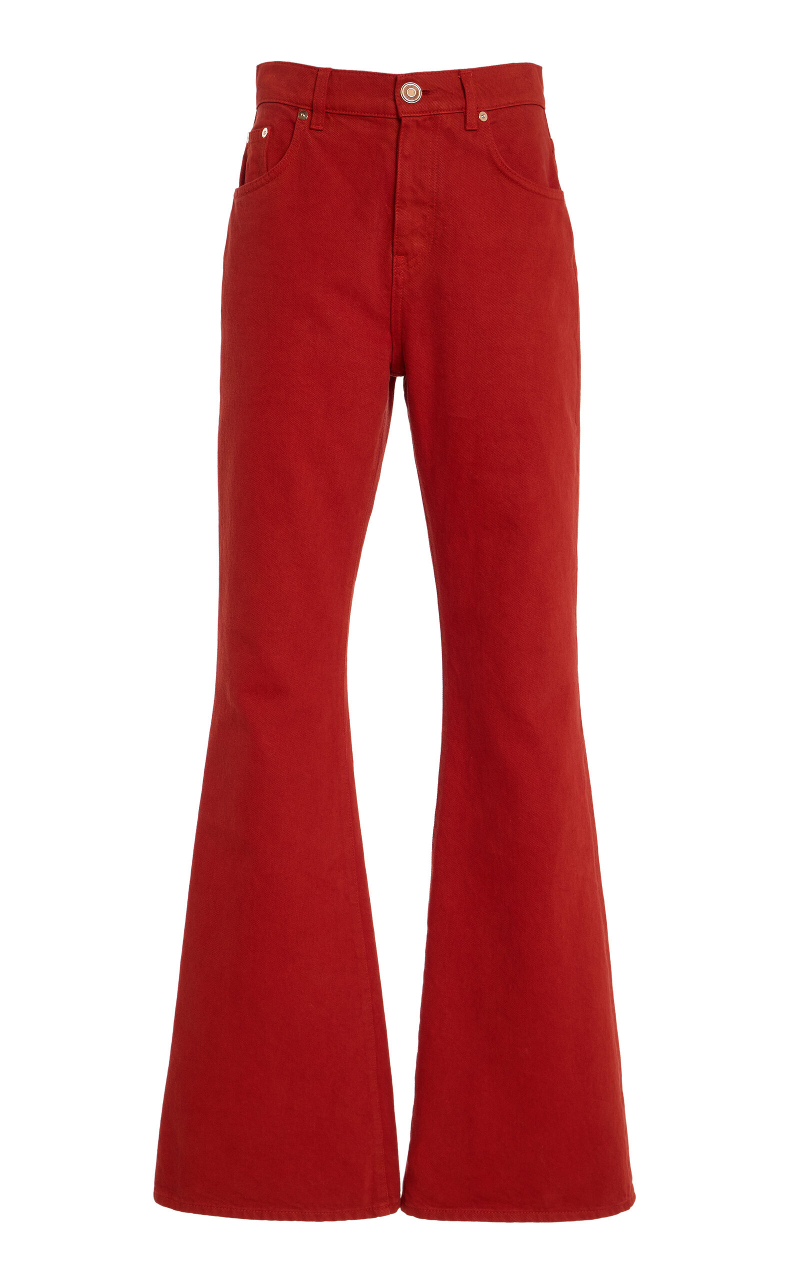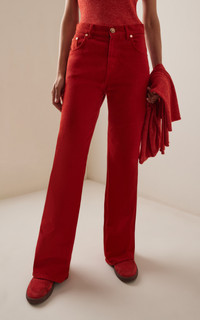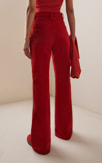 The sustainability pioneer is the industry leader in luxurious clothing and accessories that strike an understated elegance, yet are crafted with the utmost attention-to-detail and commitment to ethics. The Willa Long Bootcut Jean is crafted from recycled cotton denim, offering a lightweight feel with a structured look. Designed with a classic five-pocket construction and a long bootcut silhouette, it is finished with custom hardware at the waistband. The jean also features custom wood-inlaid brass buttons at the waist that can be removed for machine-washing. PRODUCT DETAILS - Pre-Fall '25 - Zip fly fastening - Composition: 100% cotton - Designer color: Antelope - Machine wash - Made in Italy SIZE & FIT - Our model is wearing a size 26 - Model is 5’10” with a 31.5” bust, 23.5” waist, and 35” hip - Fits true to size, our fit specialist recommends taking your normal size