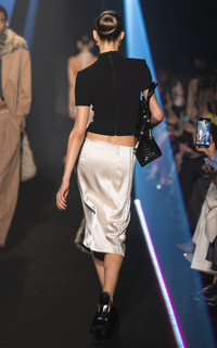 PRODUCT DETAILS - Slim fit, high neckline with short sleeves, keyhole cutout by the chest, subtle cropped silhouette - Pull Over - Composition: SILK 50% - POLYAMIDE 30% - ACETATE 20% - Color: Black - Dry Clean Only - Fall-Winter '25