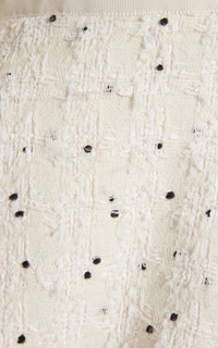PRODUCT DETAILS - Slim fit, long sleeves, V-neck - Back zipper fastening - Composition: Boucle - Color: ivory - Dry clean - Pre Fall '25