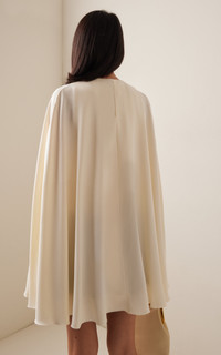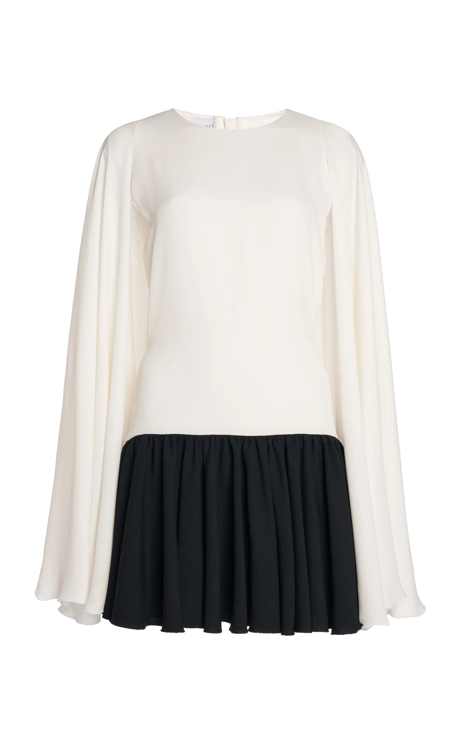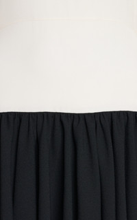PRODUCT DETAILS - Featured on the Fall/Winter '24 Runway - Slim fit, flared silhouette, crewneck, split angel sleeves, drop waist, gathered skirt - Unlined - Color: black/white - Concealed zip fastening along back - Made in Italy