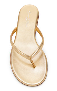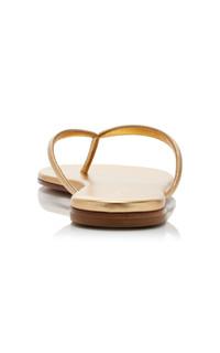 Son of Sergio, Gianvito Rossi continues the family legacy with his beautiful collection of glamorous footwear. Crafted to obsessive perfection, his shoes stem from the highest quality materials for luxurious comfort and longevity. The 'Calypso' pair is simple and classic. A thong silhouette with slender straps and a flat bed. Crafted from golden metallic leather. PRODUCT DETAILS - Slip on - Composition: leather - Made in Italy