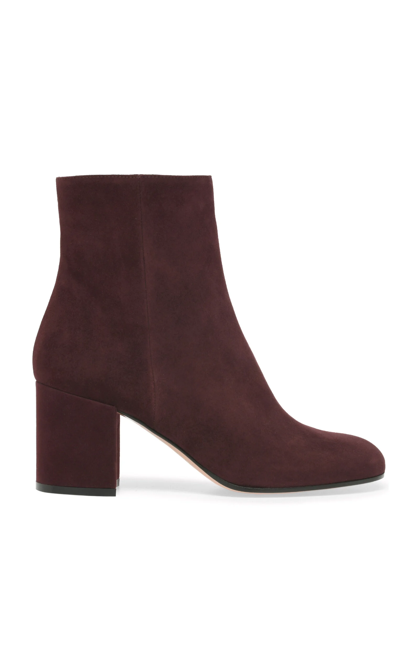 Son of Sergio, Gianvito Rossi continues the family legacy with his beautiful collection of glamorous footwear. Crafted to obsessive perfection, his shoes stem from the highest quality materials for luxurious comfort and longevity. Crafted from supple suede, Joelle is a round toe fitted bootie with a 70mm chunky heel. The design is completed with an inner tonal zipper. Handmade in Italy. PRODUCT DETAILS - Heel measures approximately 70mm / 3" - Zip fastening - Composition: 100% suede - Made in Italy SIZE & FIT - Fits small to size