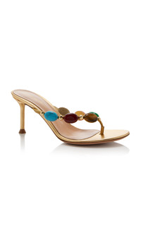 Son of Sergio, Gianvito Rossi continues the family legacy with his beautiful collection of glamorous footwear. Crafted to obsessive perfection, his shoes stem from the highest quality materials for luxurious comfort and longevity. Handmade in Italy from metallic-gold leather, these sandals have a thong silhouette decorated with an array of colorful stones that lay flat against the foot. The lightly cushioned soles provide a dose of comfort. PRODUCT DETAILS - Heel height measures approximately 70mm/ 2.75" - Slip on - Composition: leather - Designer color: Mekong - Made in Italy