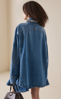One of the first luxury ready-to-wear houses, Givenchy has been sensuously reinterpreting the codes of elegance, sophistication and femininity since it was founded in 1952. Today, Creative Director Matthew M. Williams upholds the legacy of Hubert de Givenchy with timeless designs that enhance feminine beauty. Made from vintage-washed denim, this aptly named ‘Cocoon’ shirt is designed for an oversized fit with extra-long sleeves. Wear with the matching skirt and metallic pumps to complement the crystal embellishments. PRODUCT DETAILS - Pre-Fall ‘25 - Button fastening - Composition: 100% cotton - Dry clean - Designer Color: Medium Blue - Made in Italy SIZE & FIT - Our model is wearing a size FR 34 - Model is 5'11" with a 31.5" bust, 23" waist, and 34.5" hip